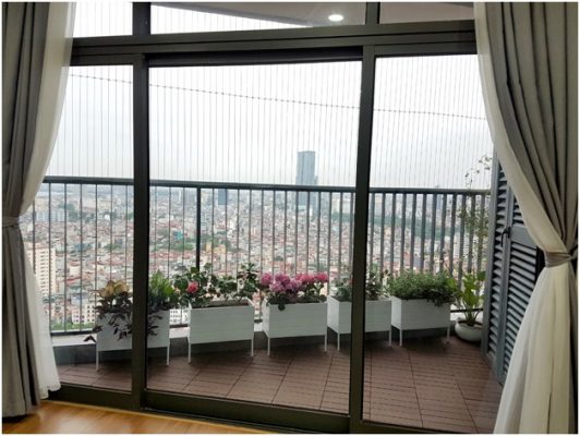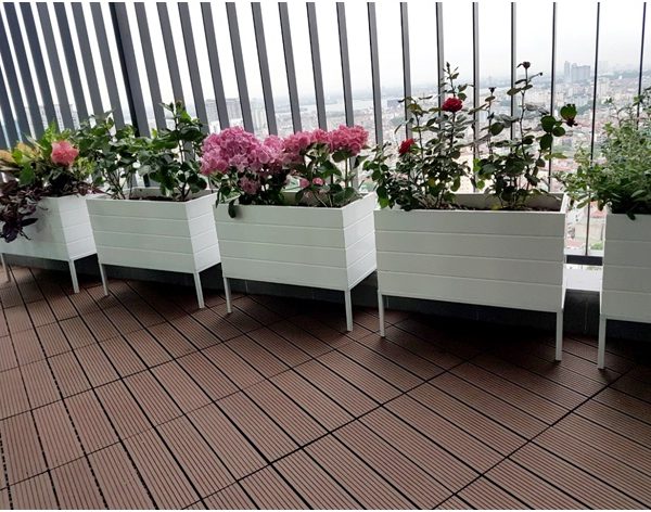 Vừa có thể trồng cây, lại có thêm một ban công nhỏ cho không gian là điểm công cho chậu kẻ ngang composite. Việc này giúp cho gia chủ tối giản được cho không gian và chi phí làm đẹp.