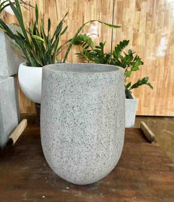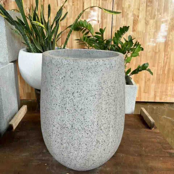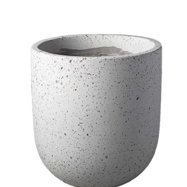 Chậu xi măng nhẹ tròn bo đáy được sản xuất chủ yếu từ chất liệu xi măng, được gia cường bằng sợi thủy tinh fiber glass kết hợp các chất phụ gia tăng độ cứng, độ chịu lực do vậy thành chậu mỏng hơn, chậu nhìn thẩm mĩ hơn, độ bền cao hơn và trọng lượng chậu giảm 40% so với chậu xi măng truyền thống.